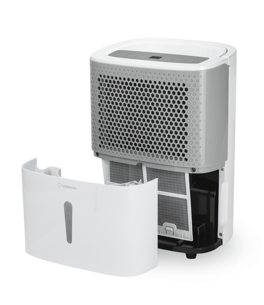 Turbionaire: slim lucht ontvochtigen Turbionaire SMART 16 M is compact, stijlvol en eenvoudig te gebruiken. SMART 16M is een compacte maar krachtige compressorontvochtiger in onze lijst. Met een watertankcapaciteit van 1,8 liter, digitaal display en elektronische hygrostaat. Hij is perfect voor elke kamer, in uw huis of op kantoor. De kenmerken van Turbionaire SMART 16 M Wasbaar luchtfilter, zeer eenvoudig te verwijderen en te wassen Automatisch opnieuw opstarten na een stroomstoring, met behoud van instellingen Elektronische hygrostaat Waterniveau-indicator aan de voorkant van de tank Functie voor de luchtontvochtiger aan de binnenkant drogen Optie voor continu afvoer, handig voor intensief gebruik Zeer stil tijdens gebruik, slechts 40 dB